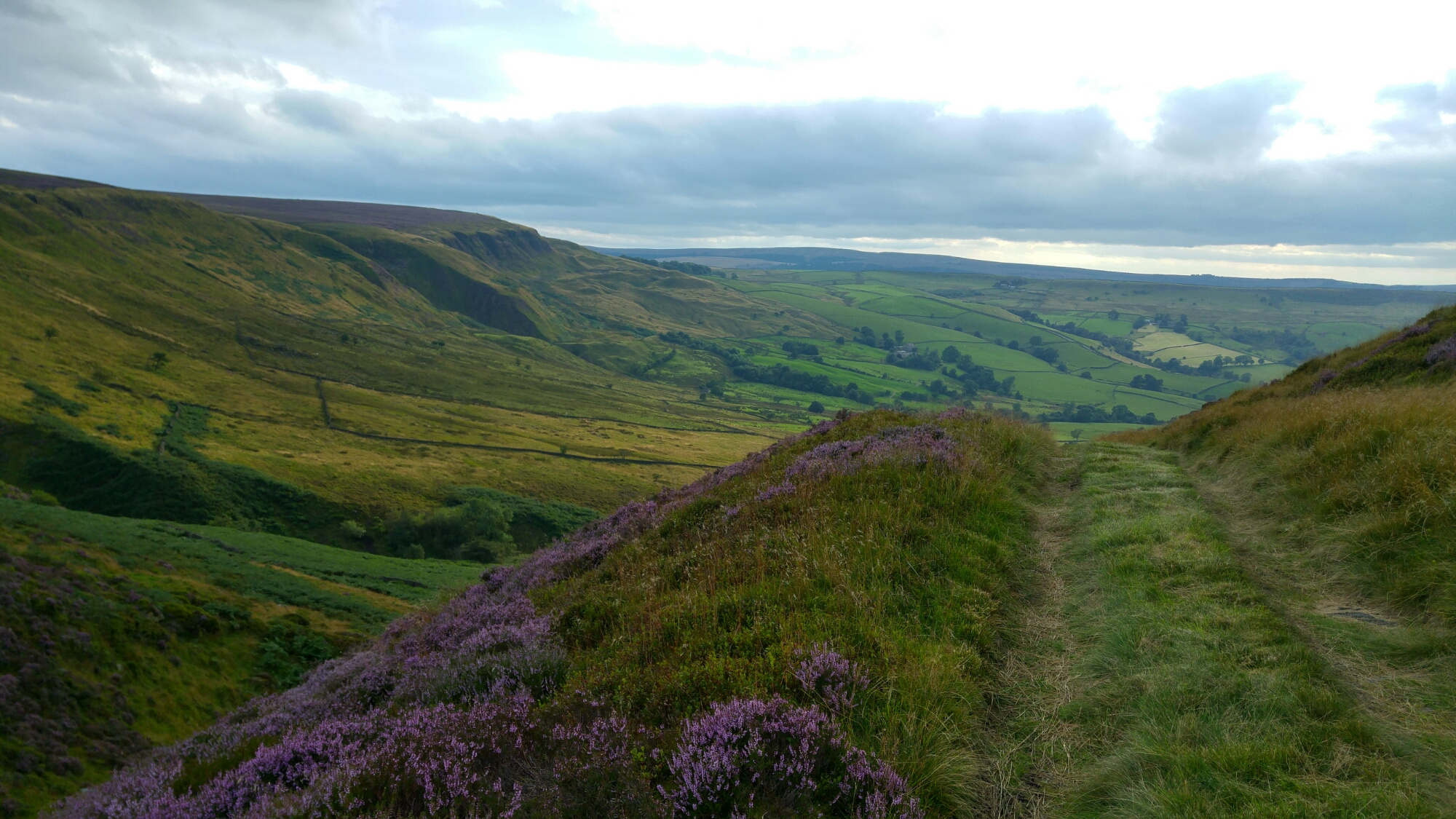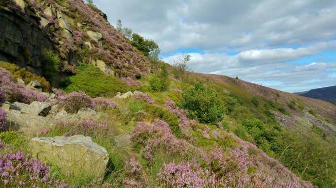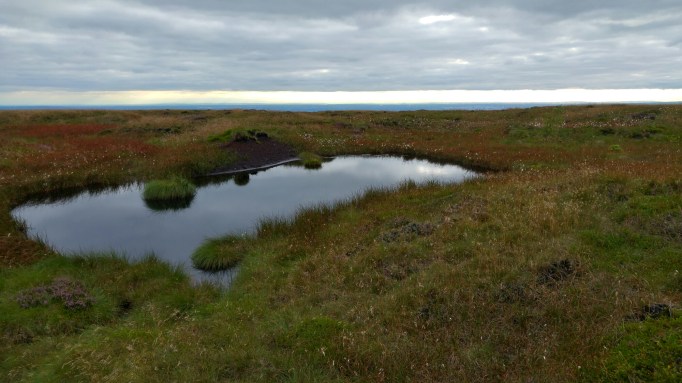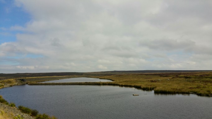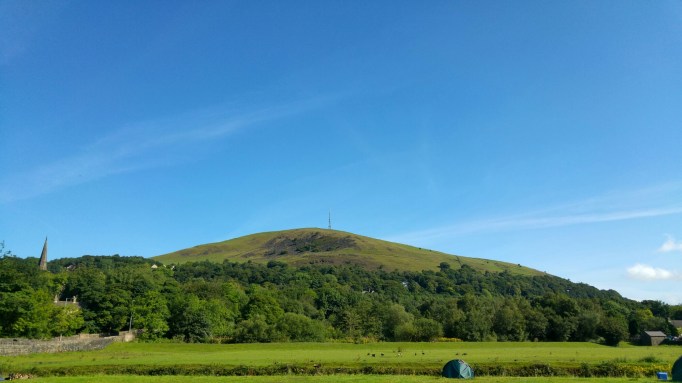 I find my way around to where I would’ve got to a bunch quicker and begin the trudge up to Turton Heights. It’s been threatening to rain all morning and now it starts – and it’s really going for it. I’m making my way up a signposted route through a field, but if the signs ever followed anything like a discernible path then it’s long overgrown. There are shoulder high rushes in enormous clumps and they quickly saturate my clothes as I squeeze through and stumble over them. I get to the top of the moor and it’s just chucking it down. I’m soaked and my shoes are audibly squelching as I walk. I realise how lucky I’ve been with the weather – I don’t know what I’d have done if there’d been two consecutive days like this earlier in the week. I don’t think I would’ve been able to handle it.