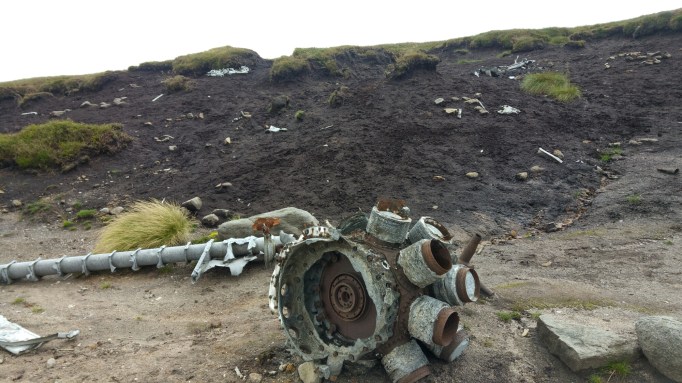I’m at the foot of Winter Hill now, but I’m not ready to head up just yet – I need to get out of the rain if just for a few minutes. I head into the first pub I see – the Belmont Bull -which, marvellously, has a sign saying ‘Muddy boots and wet bums welcome’ – I had been worried about exactly those things. I’m welcomed in by the barman, Tom. There’s no better icebreaker than looking like a defeated, sodden and overladen mess and we’re quickly talking about the walk I’ve been doing and how it’s all going to climax with Winter Hill. I complain to Tom about the rain and the rushes and he says something like – ‘Ah, the rushes, yeah. I do like a walk in the rain though’. Instantly I start to feel that I might have been being a bit soft about the rushy terrain of the West Pennine Moors. Tom says he knows a better way up Winter Hill than the one I’d been planning and I’m really happy to hear about it. It doesn’t appear on the OS maps and I never spotted it on Google Earth – but it sounds like it’s going to get me up there in a satisfyingly direct way. I try pouring the water out of my shoes, wringing out my socks and then giving them repeated blowings under the hand-dryer in the gents, but it’s really not making much of a difference. I have a couple of coffees and realise I’m starving so I order lunch. As I’m eating I have a wonderful realisation: I can leave the rucksack here. I’m going to be coming back here anyway – I’ve spoken to Rachel and she’s going to pick me up from here; I’m certainly not getting any Manchester horizon pics from the zoom-camera today; there’s nothing in there I’ll need up on the hill. I ask Tom if that would be cool and he says yes. This is amazing. I recheck the route with Tom and then set off – 33 pounds lighter. I’m practically skipping as I make my way to the outskirts of the village, past a little reservoir known locally as ‘The Blue Lagoon’, across some low wooden bridges over swollen streams and begin the ascent. The path is muddy, crumbly, full of slippy unstable rocks and great patches of bog and largely very steep – but it’s visible. It takes just under an hour for me to get up the first ascent, across the boggy ‘flats’ and then up onto the hill itself. Lord knows how long it would’ve been if I’d still had the weight of the rucksack on me. It’s really wild with wind and rain and the visibility is next to nothing. I can make out the smaller transmitters but not the main spire I’ve taken to be the end of my route. I find the trig point, which is great to see, but I want to find the fucking massive transmitter tower that’s on this hill but which is completely invisible to me now.