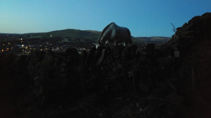 I’m starting to shiver and I decide for the first time to cut out something on my route – I’ll skip Turton Moor and the Hanging Stones. I’ll come and look at them another time. Right now, for the first time in the whole adventure, I’m really not enjoying myself. It cuts two miles off my total, but I’m still happy I’ll have done my 100 miles – the detours from the main route to the campsites and such will have more than made up for the loss. It’s still a hard decision though and I hesitate on it for a good few minutes – but cold and weariness eventually win out, and I cut off the route and head towards Belmont.