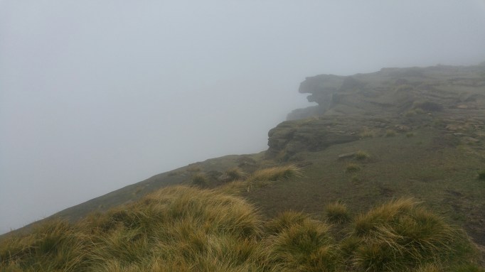 Seeing Manchester from this iconic bit of my horizon, and seeing the whole route that I’d walked to get here – the triumphant last gaze at it all – wasn’t going to happen. Sod it. It’s cold, let’s go. I scurry back down the path, which is by now pretty much a stream, cackling loudly and frequently.