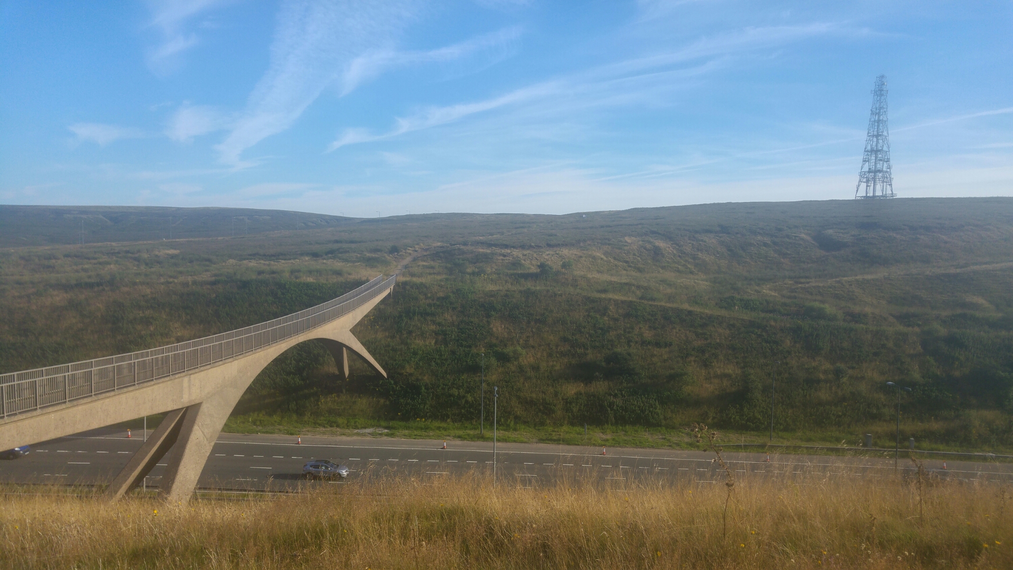 I find my way around to where I would’ve got to a bunch quicker and begin the trudge up to Turton Heights. It’s been threatening to rain all morning and now it starts – and it’s really going for it. I’m making my way up a signposted route through a field, but if the signs ever followed anything like a discernible path then it’s long overgrown. There are shoulder high rushes in enormous clumps and they quickly saturate my clothes as I squeeze through and stumble over them. I get to the top of the moor and it’s just chucking it down. I’m soaked and my shoes are audibly squelching as I walk. I realise how lucky I’ve been with the weather – I don’t know what I’d have done if there’d been two consecutive days like this earlier in the week. I don’t think I would’ve been able to handle it.